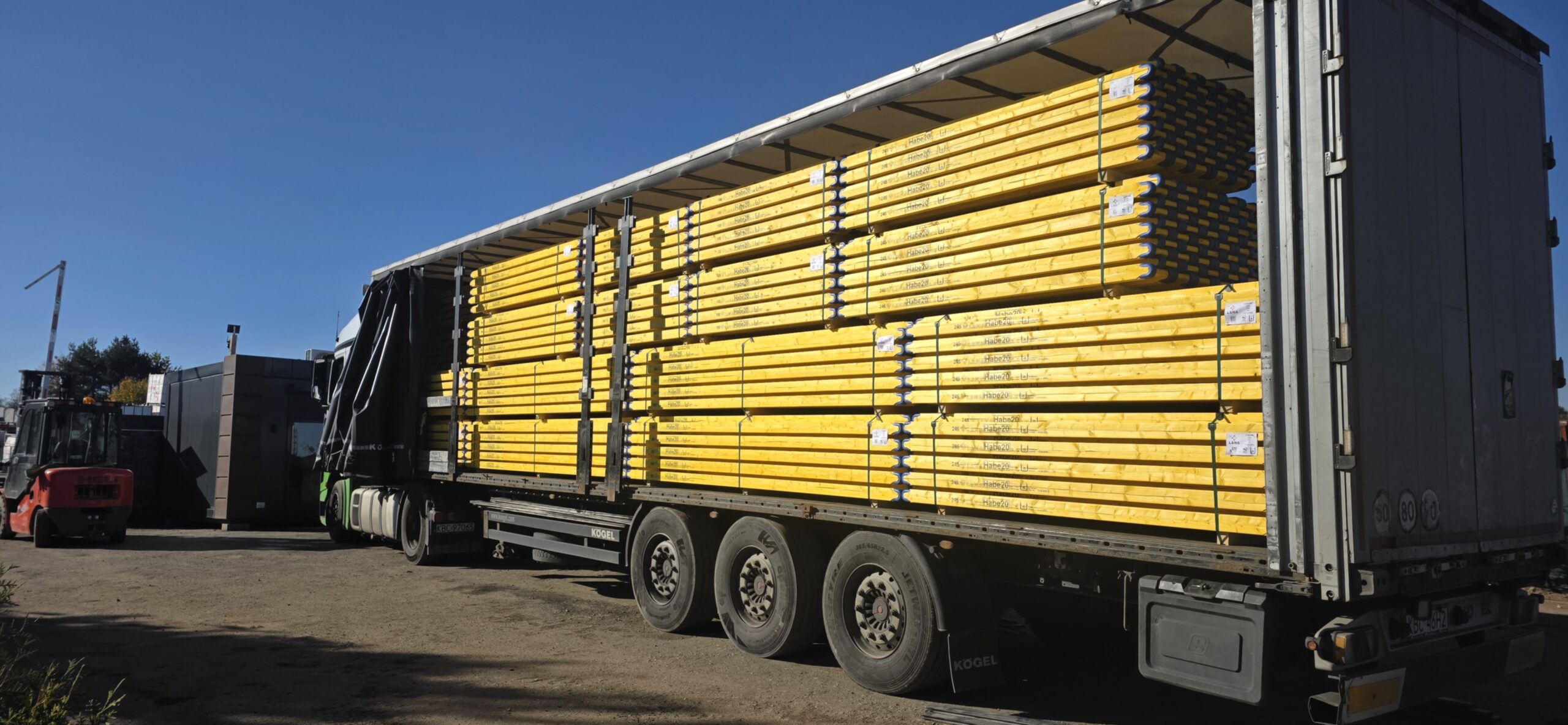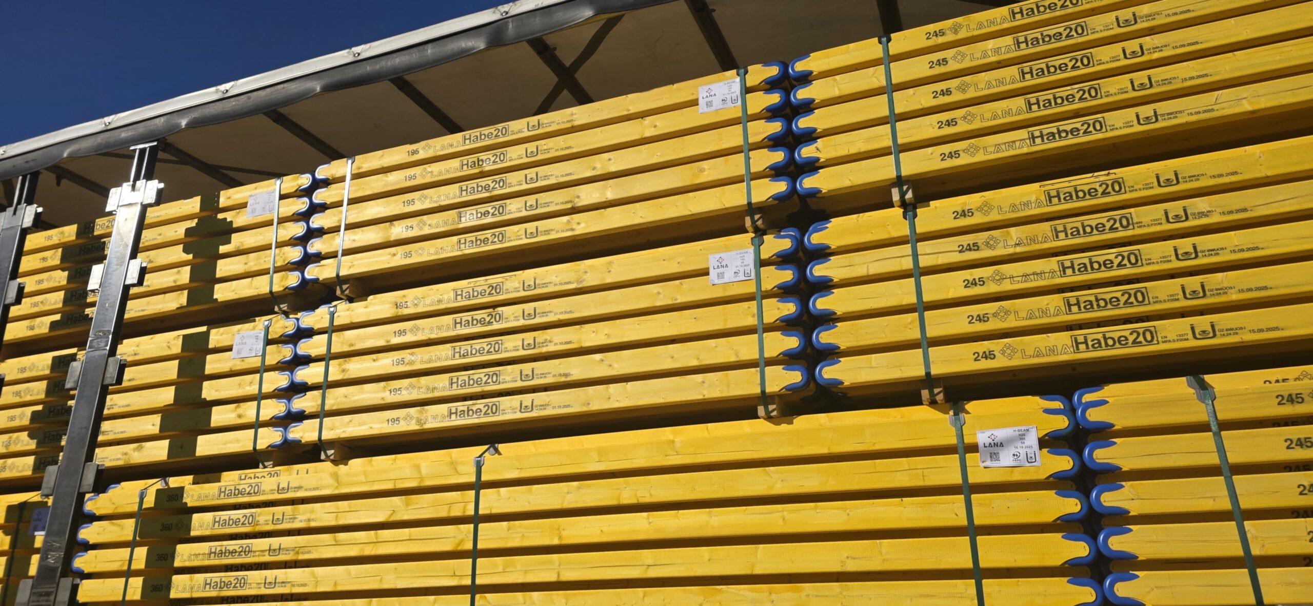 Dźwigary okute LANA- wykonane z drewna świerkowego, posiadają certyfikat PEFC. Krawędź dźwigara została zaprojektowana aby chronić go przed uszkodzeniami.
